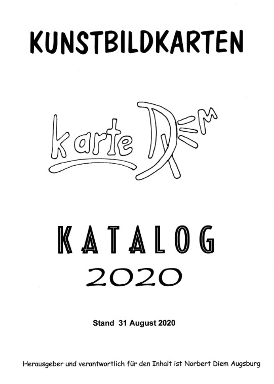 Dieser Katalog ist die aktualisierte Version einer bereits bestehenden Bestellliste. Er umfasst alle zum Sortiment ‚karte DIEM‘ gehörigen 312 Kunstkartentitel wie sie seit Februar 2004 entstanden sind. Ich bezeichne mich im Titelblatt als Herausgeber, bin natürlich aber auch der Schöpfer aller darin als Repro abgebildeten Originalkunstkarten.